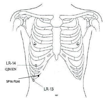 Vengono stimolati i punti zhangmen (LR-13 porta del sigillo) e qimen (LR-14 porta periodica) e tutto il meridiano Vescica Biliare.