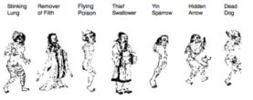 I "Sette Po" si chiamano Shi Gou (尸狗), Fu Shi (伏矢), Que Yin (雀阴), Tun Zei (吞贼), Fei Du (非毒), Chu Hui (除秽) e Chou Fei (臭肺). I nomi sono un po' strani, ma svolgono lavori "molto pratici", supportati principalmente da questi due "ministri dei servizi": polmoni e reni.