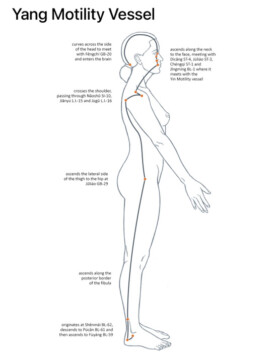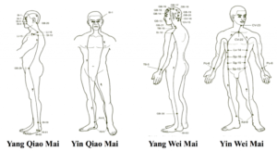 I restanti Vasi Yinqiao, Yangqiao, Yinwei e Yangwei sono più come "vie di emergenza": i vasi qiao e wei governano il sonno e l'equilibrio nel cammino (Yangqiao regola la veglia, Yinqiao la dormita); Yinwei e Yangwei collegano tutti i canali yin e yang del corpo, come "linee di emergenza" che mobilizzano qi e sangue per combattere i fattori esterni nocivi quando si è ammalati.